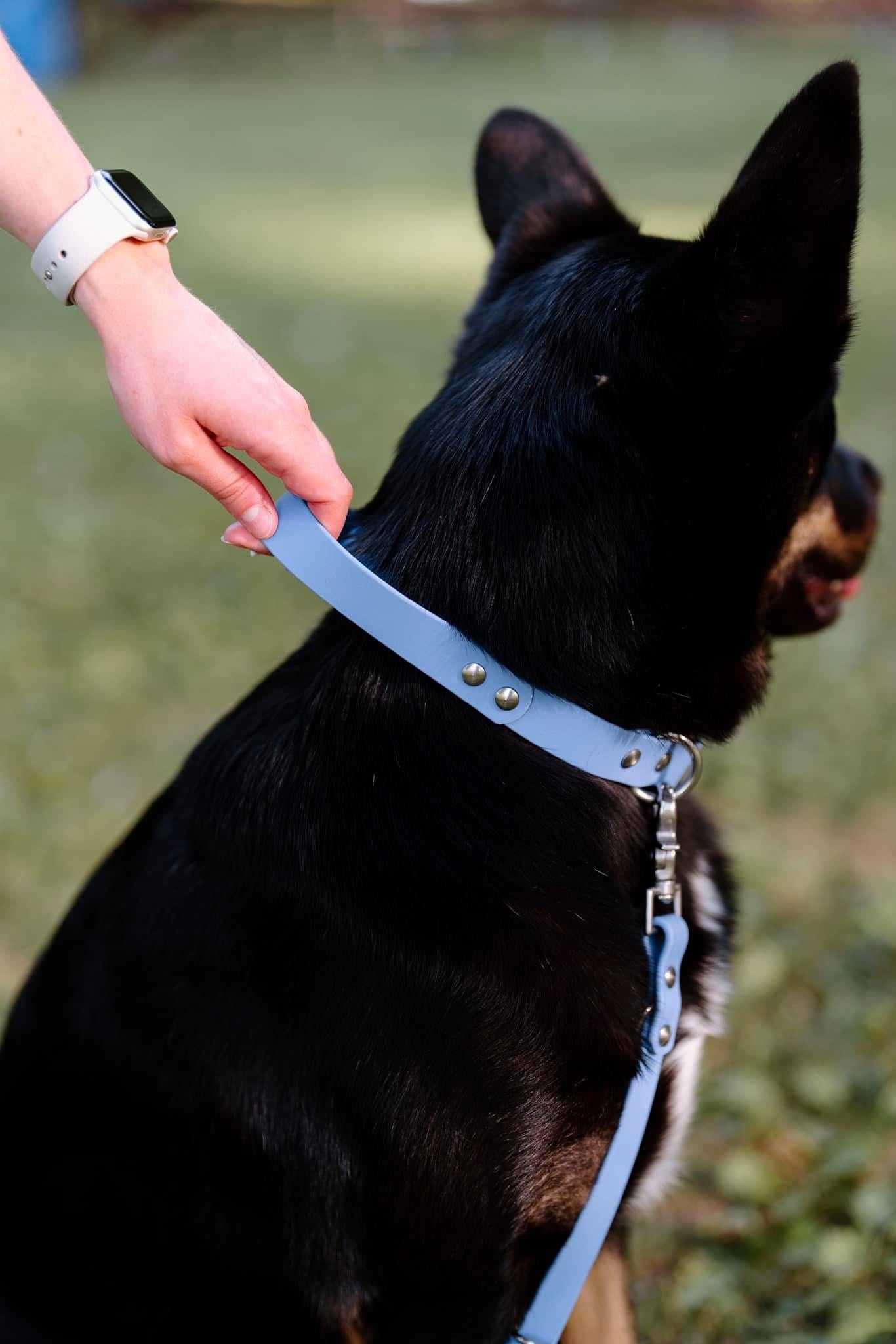 BioThane® is the most robust material available on the market for collars and leashes. The vegan material feels like broken-in leather; it is soft, comfortable and does not chafe. In addition, BioThane® is stink-proof, waterproof, durable and will last for years.