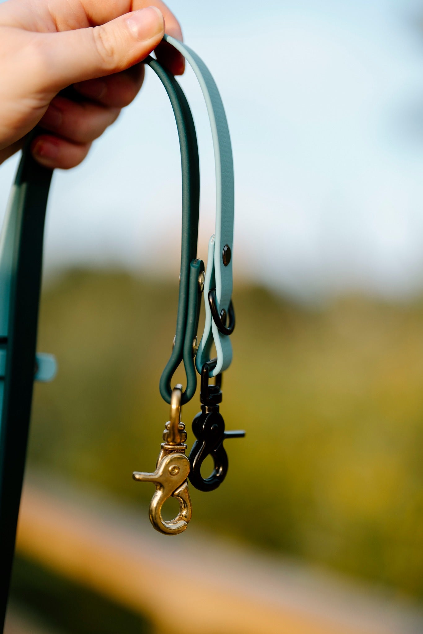 BioThane® is the most robust material available on the market for collars and leashes. The vegan material feels like broken-in leather; it is soft, comfortable and does not chafe. In addition, BioThane® is stink-proof, waterproof, durable and will last for years.