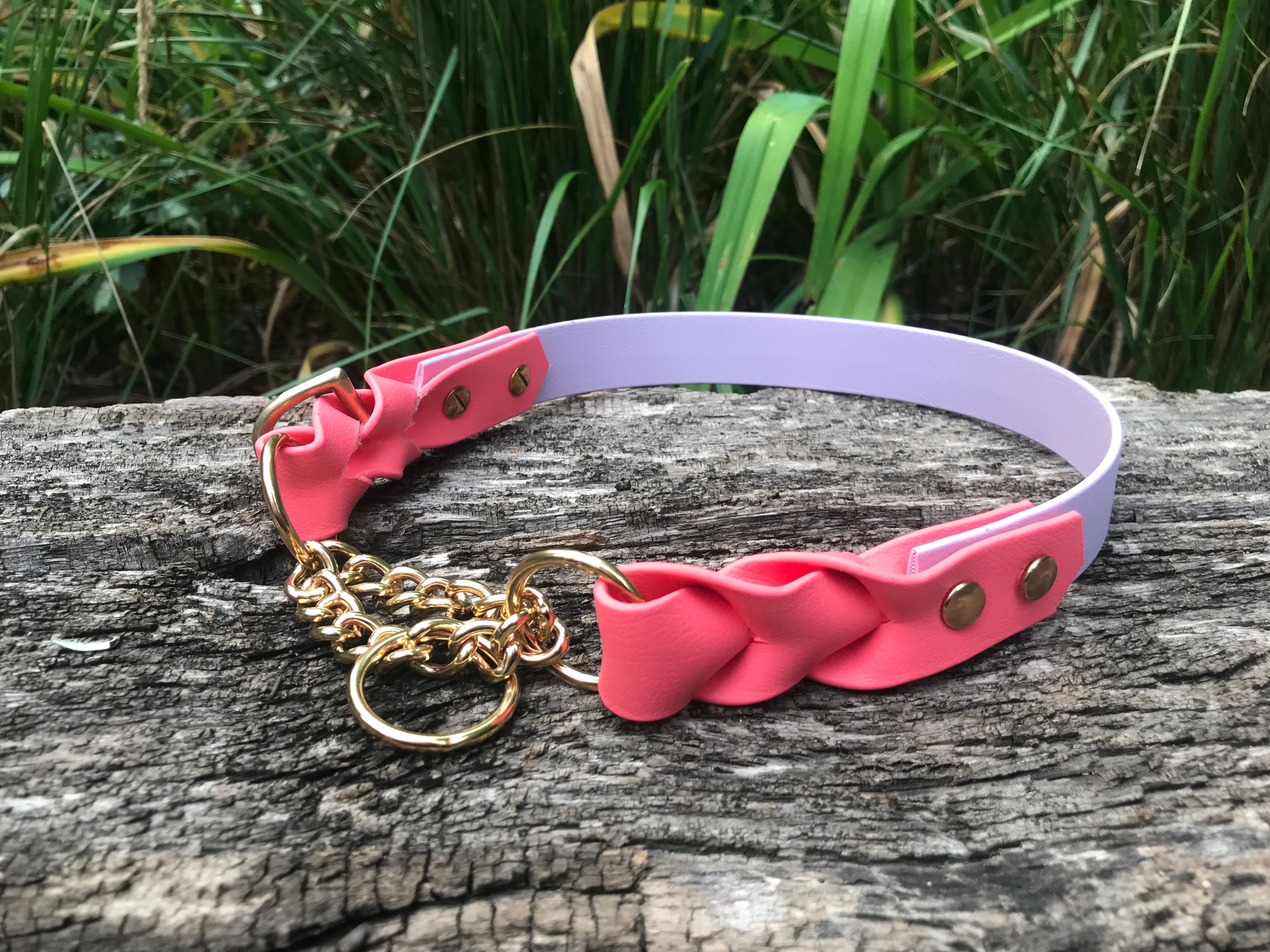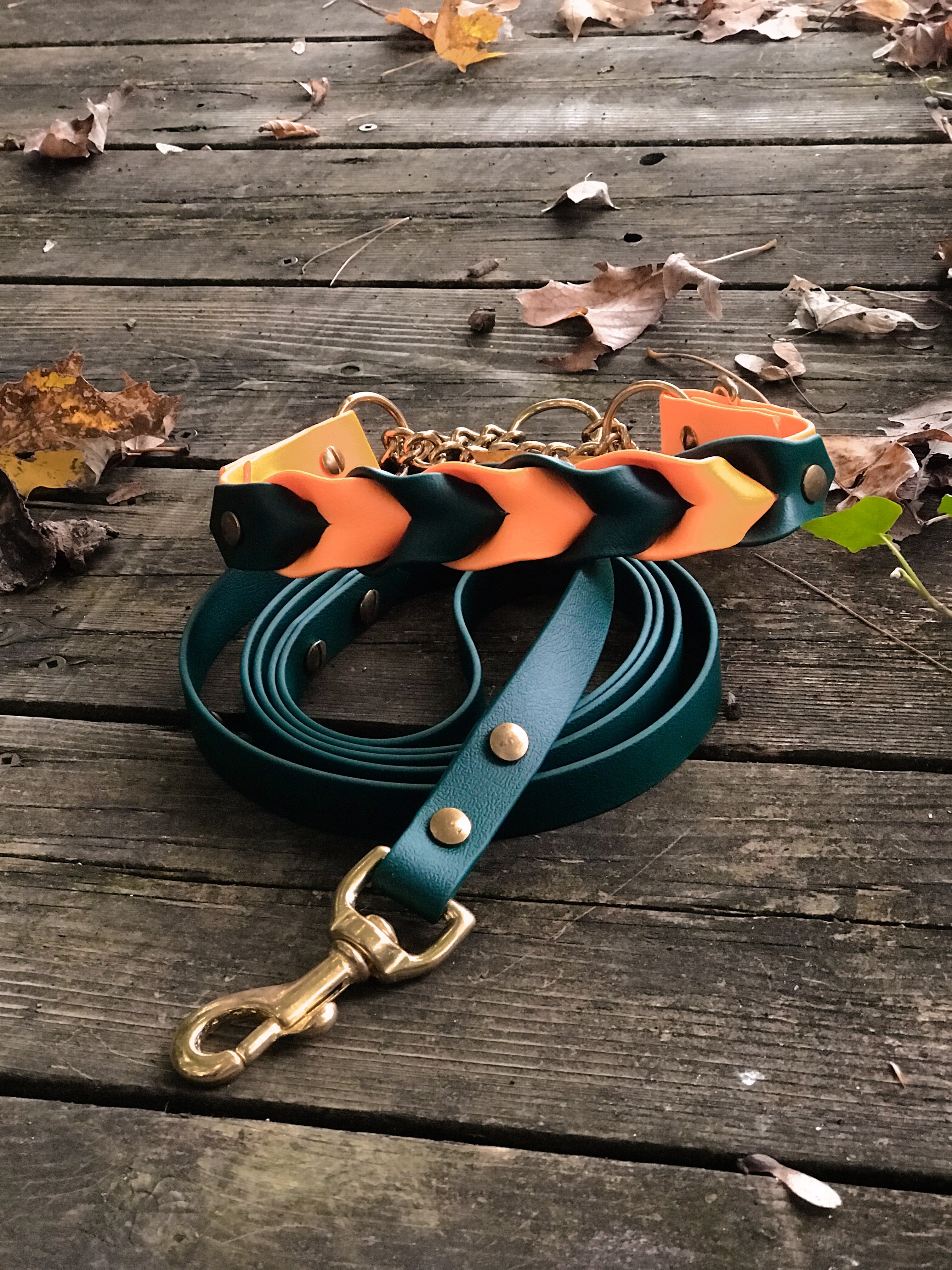 BioThane® is the most robust material available on the market for collars and leashes. The vegan material feels like broken-in leather; it is soft, comfortable and does not chafe. In addition, BioThane® is stink-proof, waterproof, durable and will last for years.