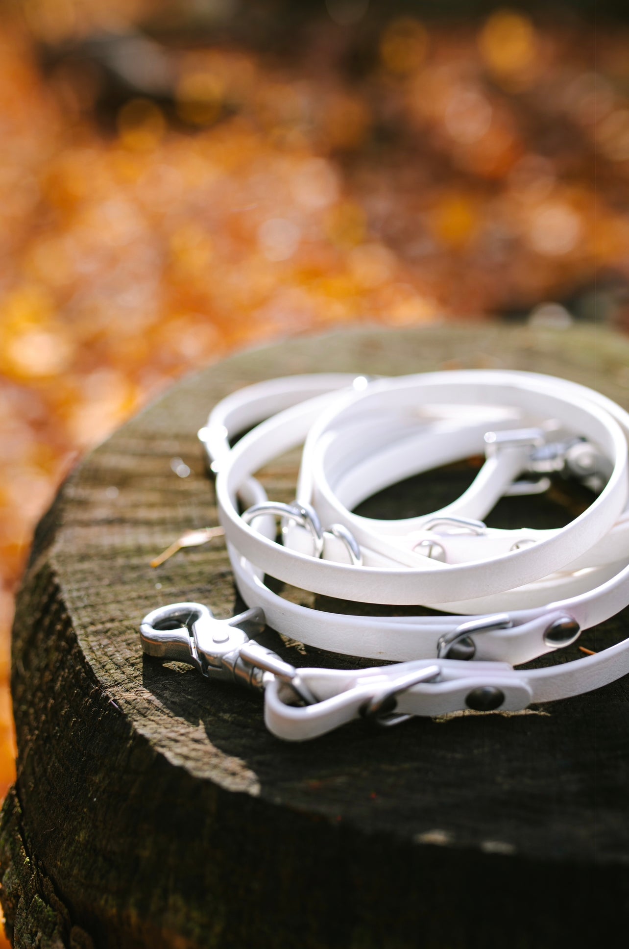 *Although our equipment is made to withstand even the most extreme weather conditions, harsh chemicals like skunk spray, ink, or adhesive can discolour Biothane.*