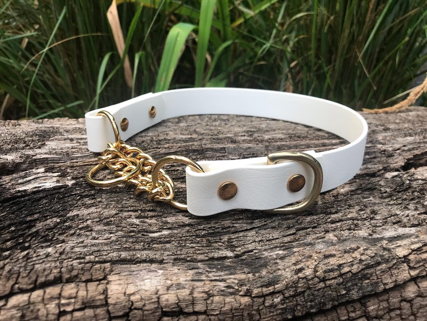 BioThane® is the most robust material available on the market for collars and leashes. The vegan material feels like broken-in leather; it is soft, comfortable and does not chafe. In addition, BioThane® is stink-proof, waterproof, durable and will last for years.