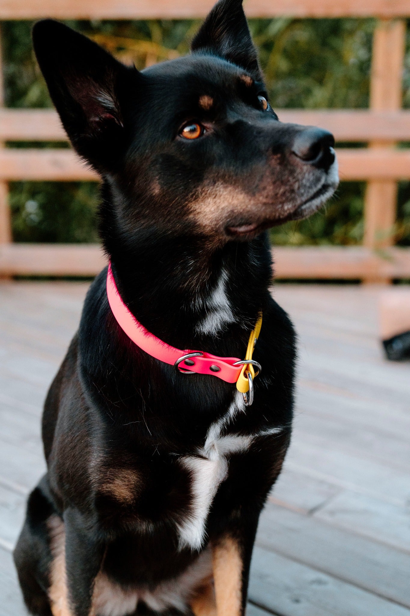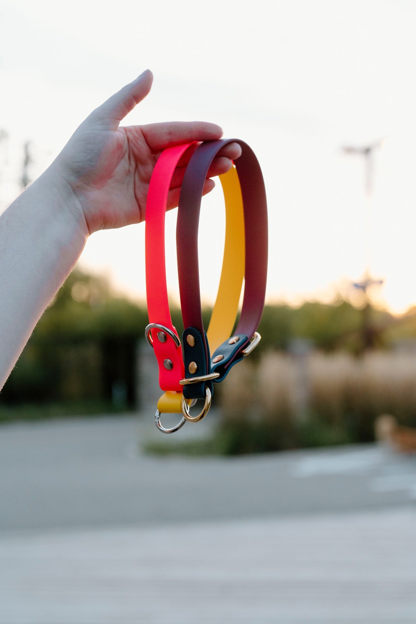 BioThane® is the most robust material available on the market for collars and leashes. The vegan material feels like broken-in leather; it is soft, comfortable and does not chafe. In addition, BioThane® is stink-proof, waterproof, durable and will last for years.