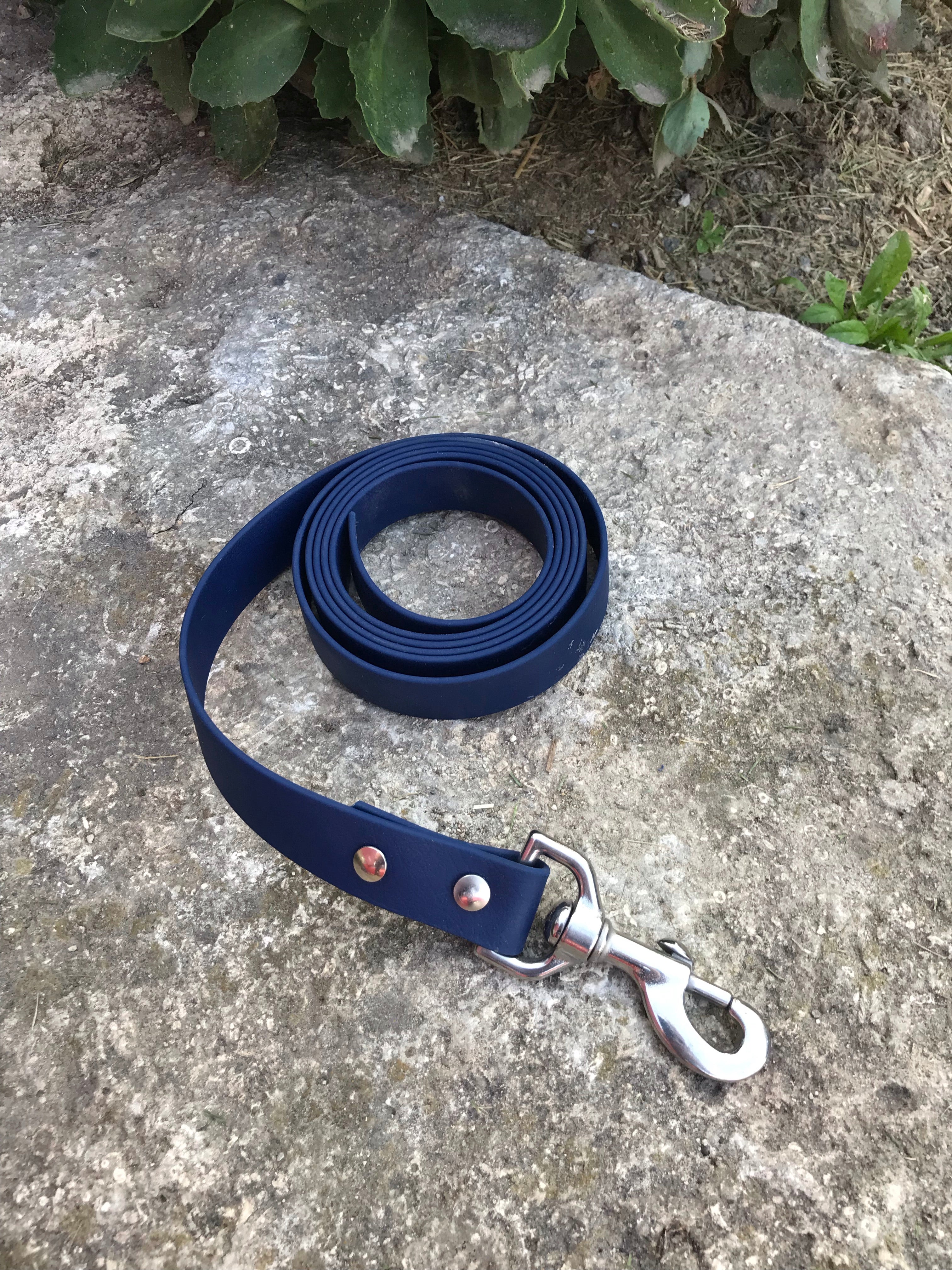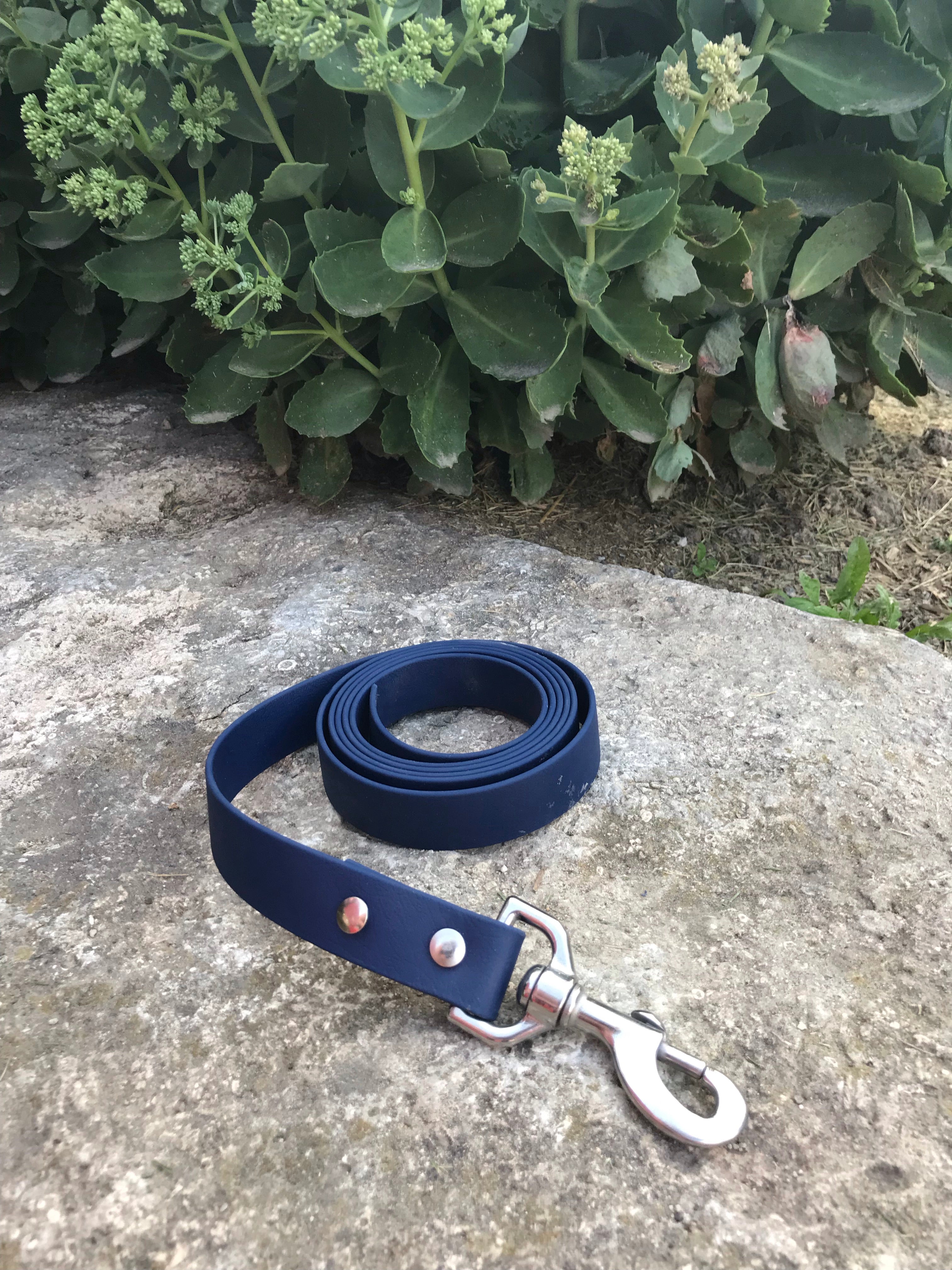 BioThane® is the most robust material available on the market for collars and leashes. The vegan material feels like broken-in leather; it is soft, comfortable and does not chafe. In addition, BioThane® is stink-proof, waterproof, durable and will last for years.
