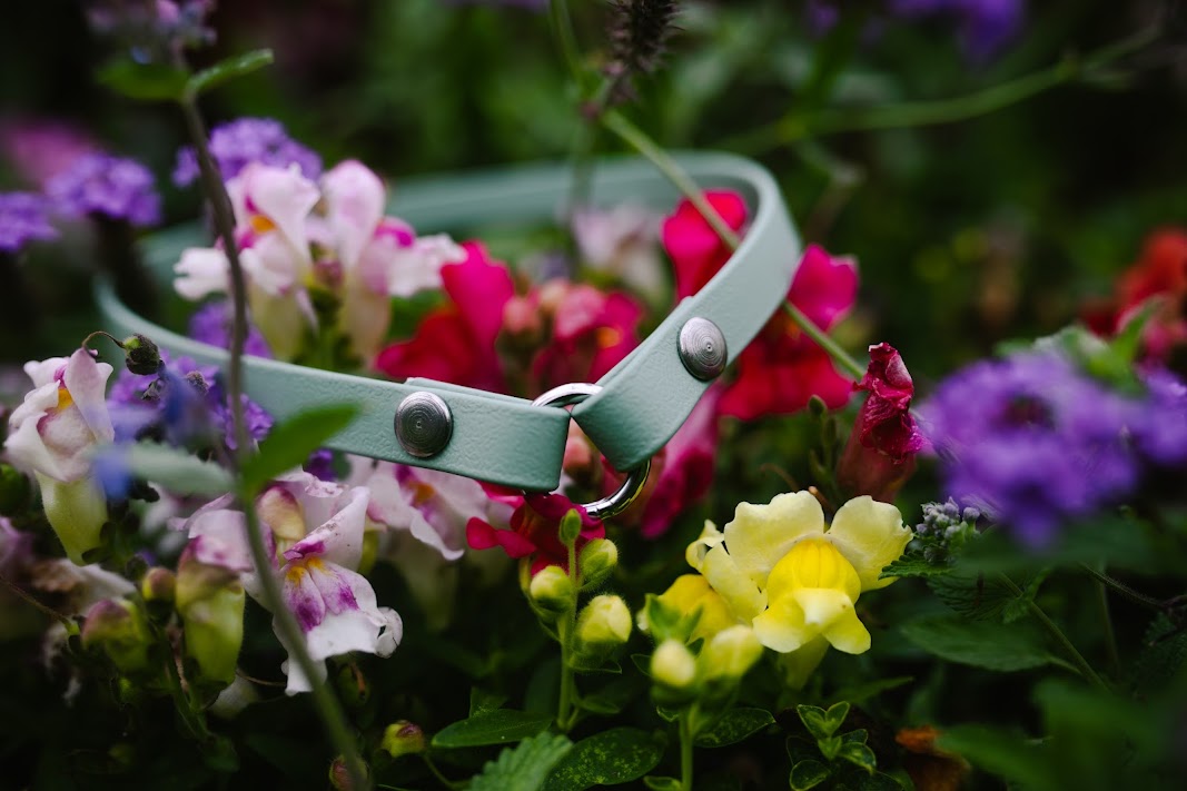 BioThane® is the most robust material available on the market for collars and leashes. The vegan material feels like broken-in leather; it is soft, comfortable and does not chafe. In addition, BioThane® is stink-proof, waterproof, durable and will last for years.