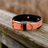Photo 1: 1.5” Secondary & 1” Primary Layered collar with rosegold and black strap keeper. The Primary colour is Rosegold and the Secondary colour is Jet Black