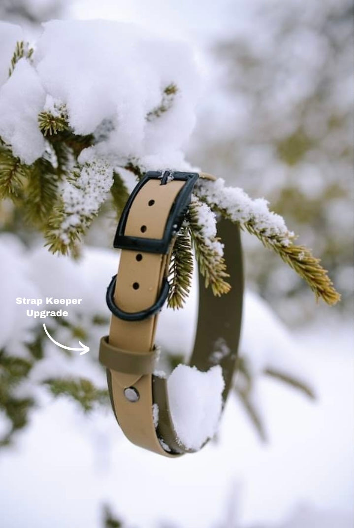 BioThane Strap keeper: Consider our optional strap keeper—an extra touch to secure and maintain the extra length of your collar. While not essential for everyone, it's a thoughtful add-on for those seeking an extra layer of convenience and security. This strap keeper is the colour of your secondary choice!
